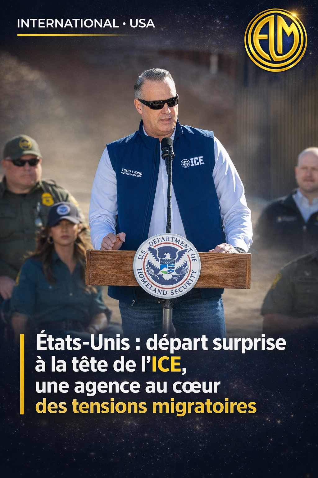 Nommé en mars 2025 par le président Donald Trump, Todd Lyons était un pur produit de l’ICE. Entré dans l’agence en 2007 comme agent au Texas, il a gravi les échelons jusqu’à diriger l’institution chargée d’appliquer la politique migratoire la plus dure de l’administration républicaine.