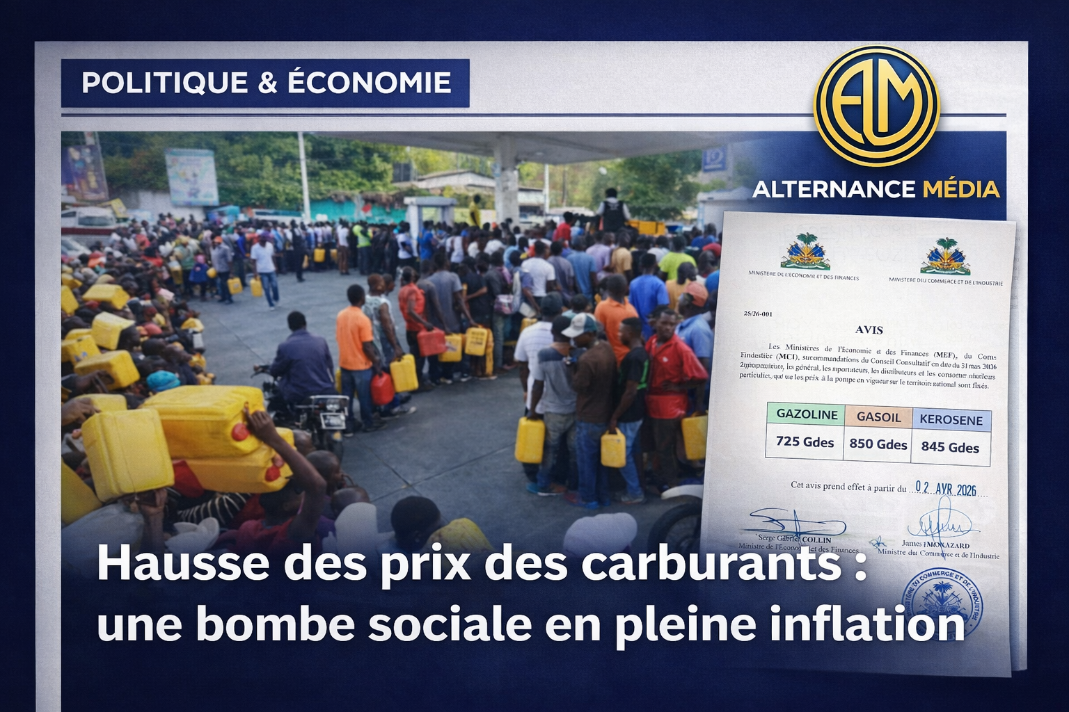 La flambée des prix des carburants en Haïti s’inscrit dans un contexte international tendu, notamment marqué par les conflits persistants au Moyen-Orient qui perturbent les marchés pétroliers mondiaux. Dans un communiqué conjoint du Ministère de l’Économie et des Finances (MEF) et du Ministère du Commerce et de l’Industrie (MCI), en date du 31 mars 2026, les autorités annoncent une hausse significative des prix à la pompe à compter du 2 avril. La gazoline passe de 560 à 725 gourdes (+29,5%), le gasoil de 620 à 850 gourdes (+37,1%) et le kérosène de 615 à 845 gourdes (+37,4%). Une augmentation brutale qui risque d’accentuer davantage la pression sur une économie déjà fragilisée, analyse dans son éditorial, Willy DESULMA, directeur adjoint de la rédaction en charge de l’économie.