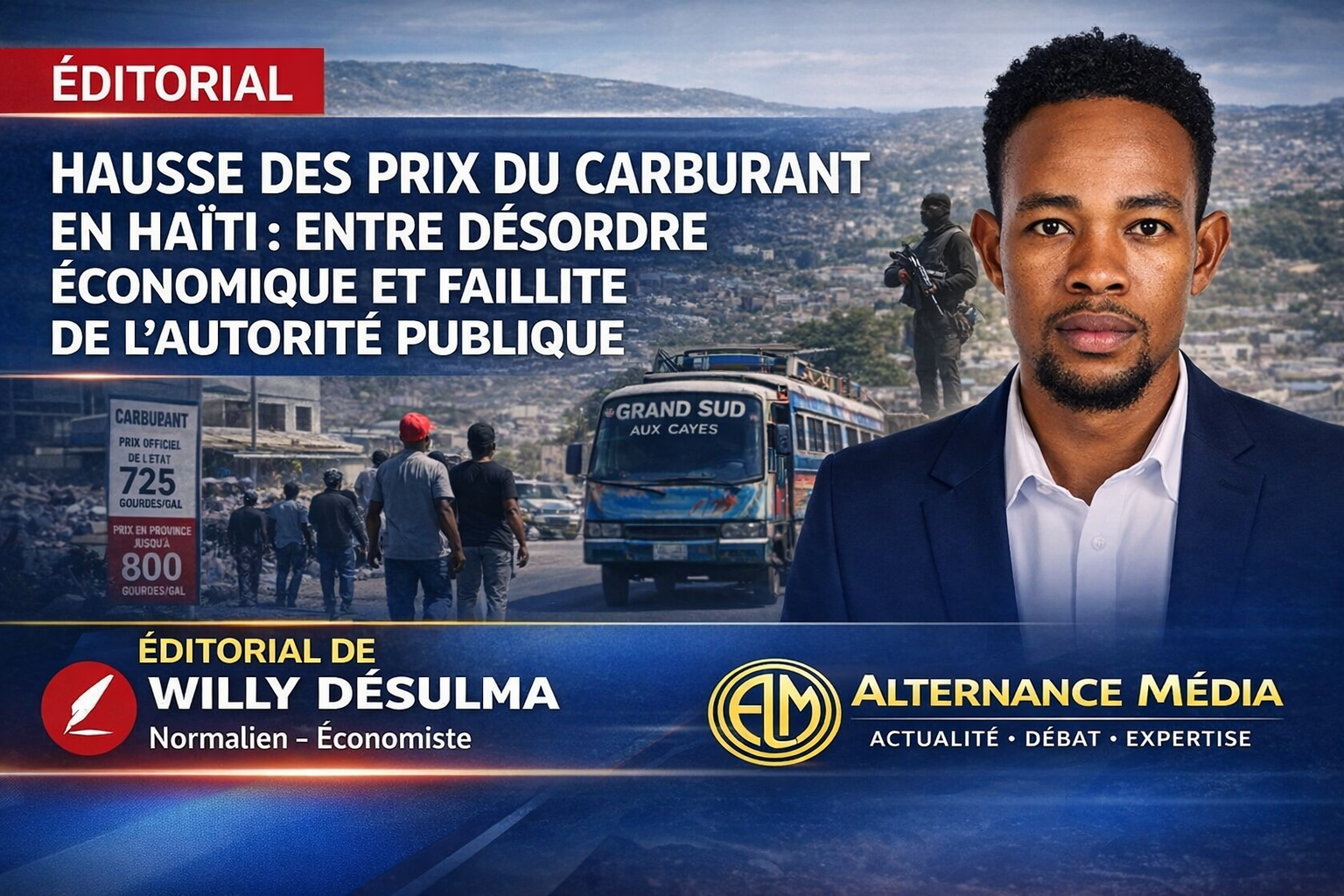 La récente hausse des prix du carburant en Haïti met en lumière bien plus qu’un simple ajustement économique : elle révèle une crise profonde de gouvernance et un affaiblissement inquiétant de l’autorité de l’État. Fixé officiellement à 725 gourdes le gallon de gazoline, le prix est pourtant appliqué de manière inégale sur le territoire. Dans plusieurs villes de province, notamment dans le Grand Sud, il atteint déjà 800 gourdes, sous l’impulsion de syndicats et d’acteurs locaux, en contradiction avec les décisions du pouvoir central, relève, dans son éditorial, Willy DESULMA, directeur adjoint de la rédaction d’ « Alternance Média »..