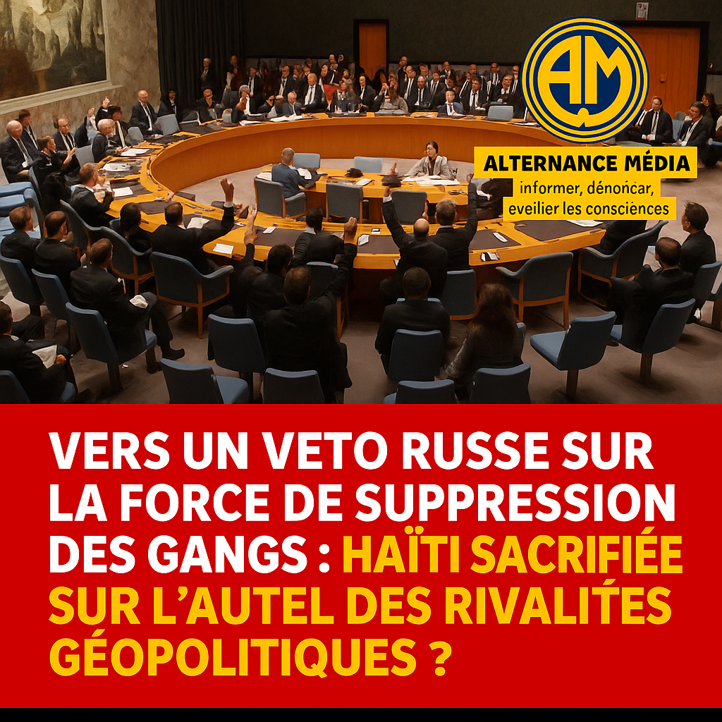 Alors que le mandat de la Mission multinationale d’appui à la sécurité (MMAS) expire dans deuxjours, l’avenir d’Haïti se joue une fois de plus dans les couloirs de New York. Les États-Unis et le Panama pressent le Conseil de sécurité d’adopter une résolution créant une Force spéciale de suppression des gangs (FSG), plus robuste et offensive que l’actuelle mission. Mais la Russie brandit son veto, accusant Washington de vouloir instrumentaliser le drame haïtien pour en découdre avec Caracas, Analyse, dans sa chronique, Ralph Siméon, éditorialiste politique d’« ALTERNANCE MÉDIA « .