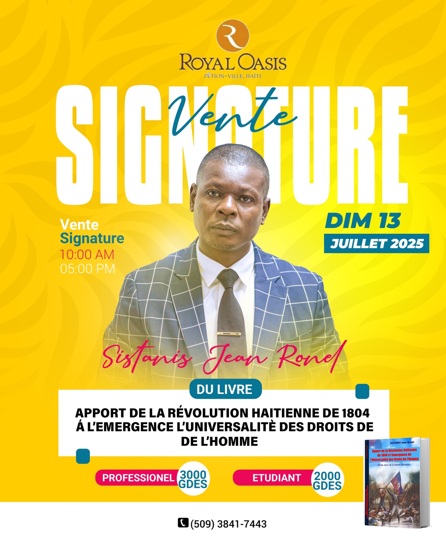 Dans une Haïti en proie à l’instabilité, à la violence et à la perte de repères, un ouvrage vient ranimer les fondations profondes de notre identité. Le professeur Jean Ronel Sistanis, directeur général du Ministère de la Défense et spécialiste en droit public, signera ce dimanche 13 juillet à l’Hôtel Royal Oasis un livre qui redonne à 1804 toute sa portée : non pas seulement comme un événement national, mais comme un acte fondateur des droits humains à l’échelle universelle.