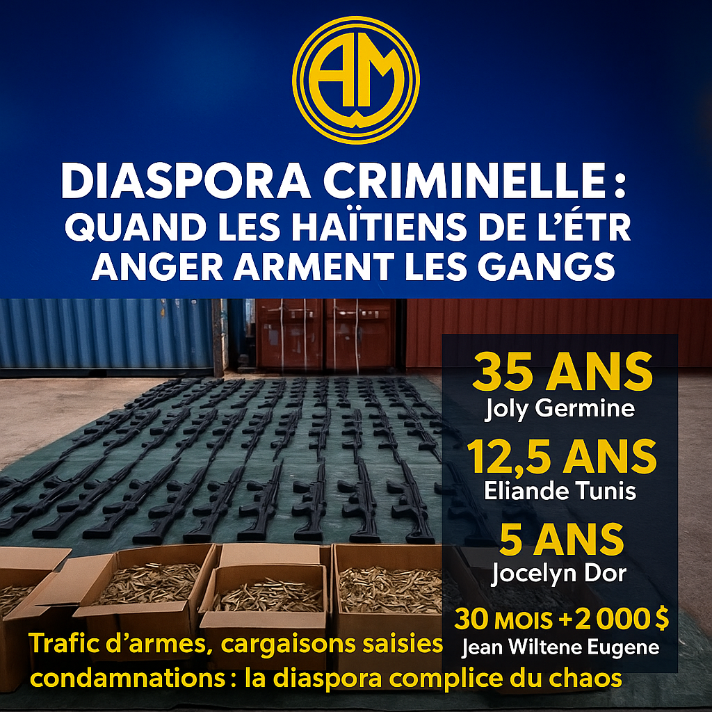 Pendant que des familles haïtiennes envoient chaque mois quelques dollars pour nourrir leurs proches, une autre frange de la diaspora choisit d’empoisonner le pays. Depuis Miami, Orlando, Brooklyn ou Indianapolis, des ressortissants haïtiens organisent le trafic d’armes et de munitions qui inondent les gangs. Ces diasporas criminelles portent une responsabilité directe dans l’embrasement d’Haïti. Contrairement aux jeunes sans avenir enrôlés de force dans les bidonvilles, ces trafiquants vivaient dans la stabilité et ont fait le choix conscient de détruire leur terre natale. Leur culpabilité est plus lourde encore que celle des chefs de gangs.